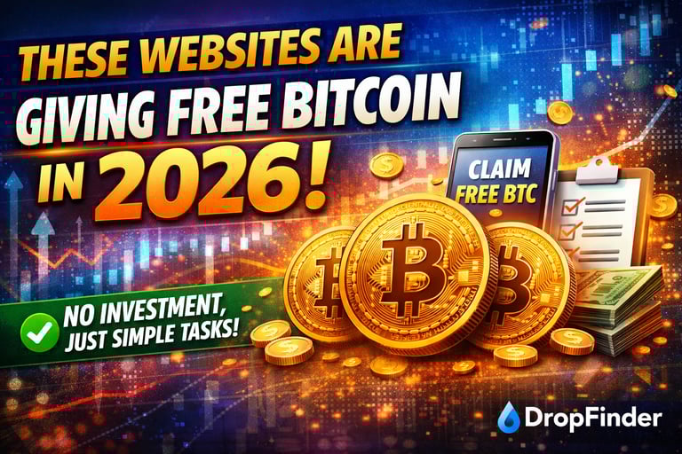 Discover the top 5 legitimate websites giving free Bitcoin in 2026 for simple tasks like surveys, learning, and daily activities. No investment required. A verified guide by DropFinder Insights.