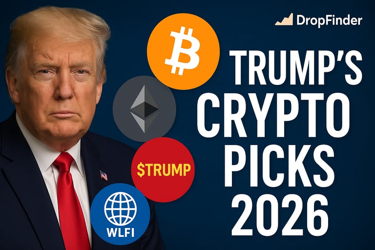 A complete DropFinder analysis of the cryptocurrencies Donald Trump is buying for 2026. Discover the digital assets shaping his crypto empire — and why these same coins could be smart investments for your portfolio this year.
