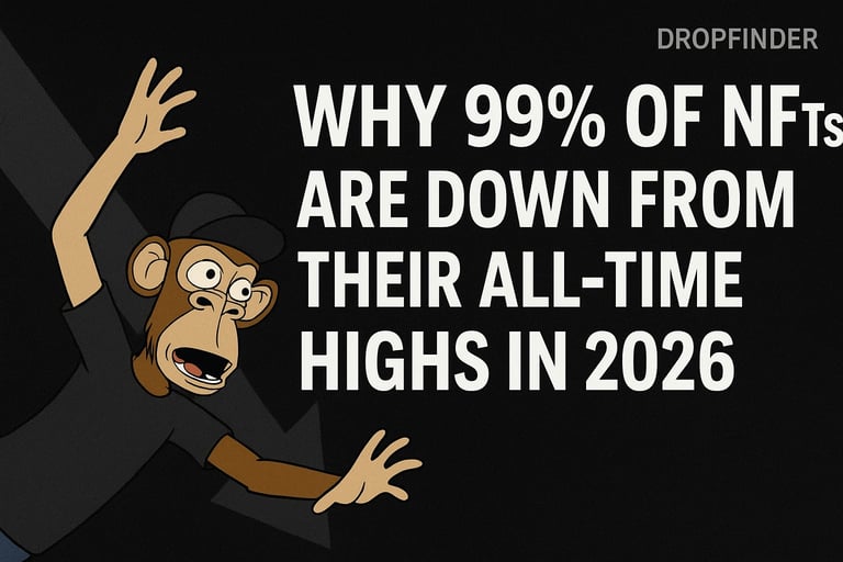 Discover why nearly all NFTs have plummeted 99% from their all-time highs by 2026. Learn the key reasons behind the crash, investor psychology, and what the future holds for the NFT market — powered by DropFinder.